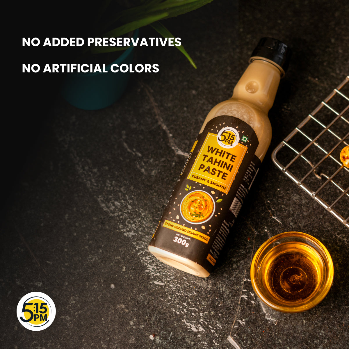 β ULTRA SMOOTH PASTE: 5:15PM Tahini paste is an ultra-smooth paste of unsalted Sesame seeds. 5:15PM Tahini is naturally ground in specially designed stone grounder that allows it to make a smooth paste. The stone ground seeds ensure the finest texture of tahini paste.