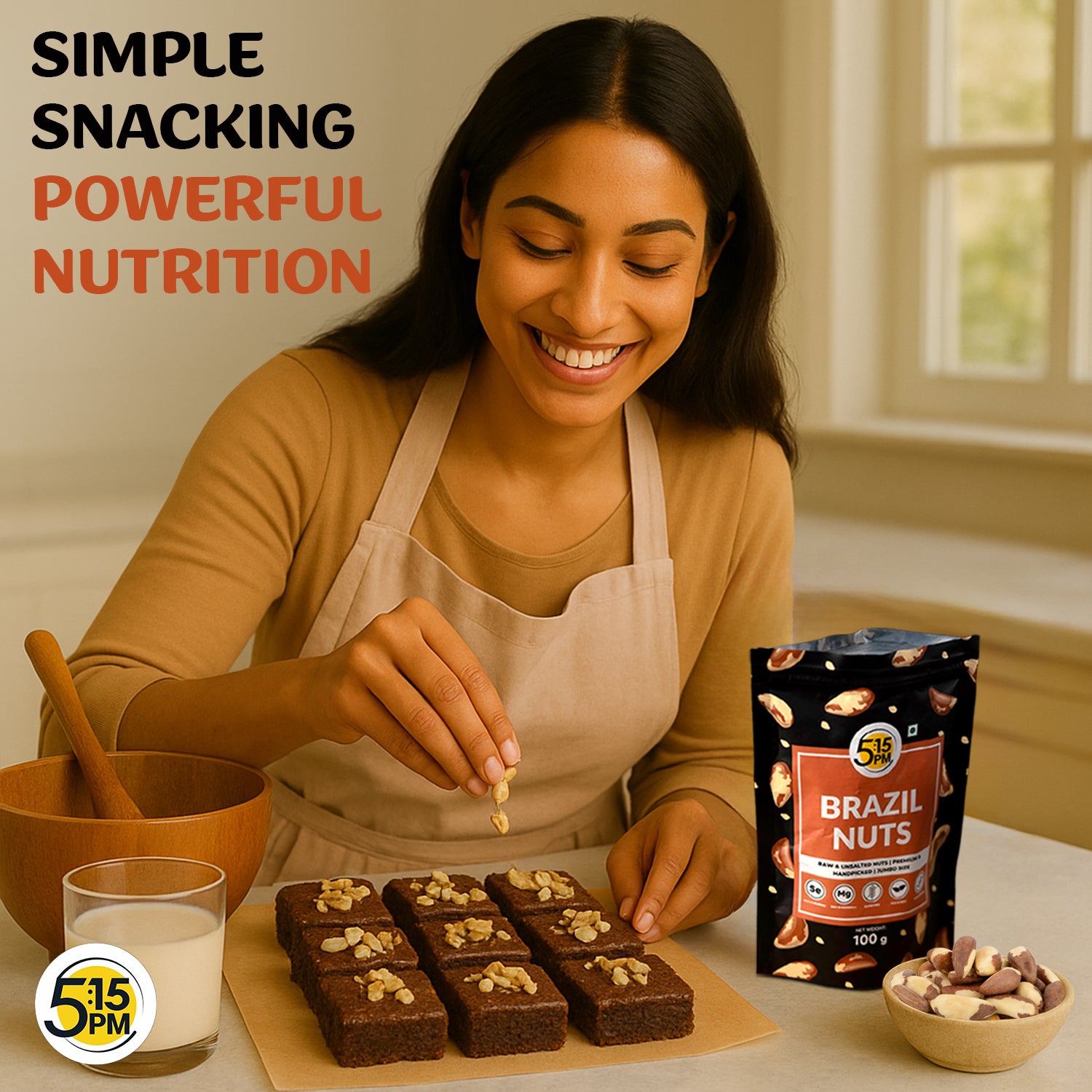 ✅ 100% Natural & Premium Quality Brazilian Nuts: Our 5:15 PM Brazil Nut 100g are jumbo-sized, raw, and 100% natural with no added flavours or preservatives. Unlike bulk packs like brazil nuts 250g,brazil nuts 1kg, our 100g pack ensures freshness, better portion control, and minimal wastage – brasil nut are perfect for daily snacking or mindful eating.