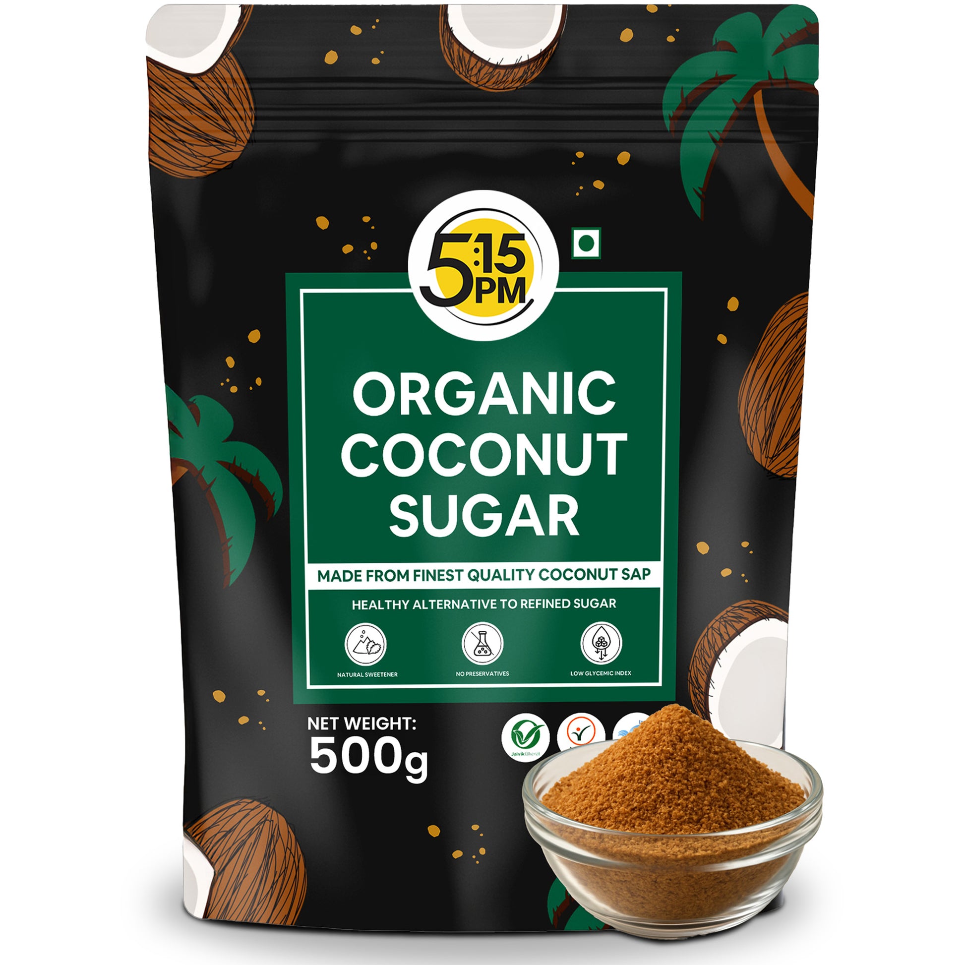 β 100% NATURAL ORGANIC COCONUT SUGAR: Made from the finest quality coconut sap, our 5:15PM Coconut Sugar is a superfood unrefined natural sweetener with no added preservatives, 100% all-natural, gluten free, & 100% certified Organic in nature.