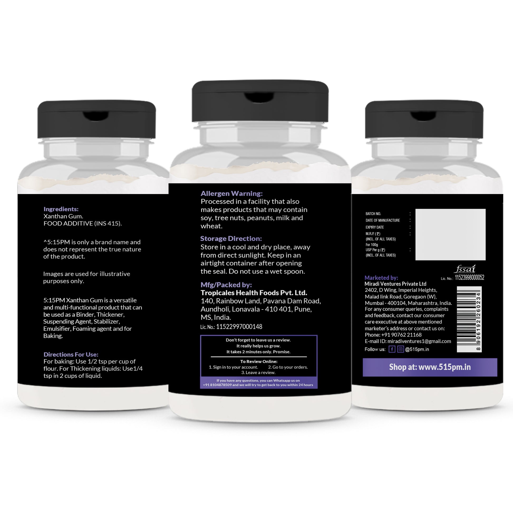 β 100% PURE & NATURAL XANTHUM GUM: A natural thickening agent sourced purely from plants, our 5:15PM Xanthan Gum is guaranteed to be 100% authentic, pure, and natural.